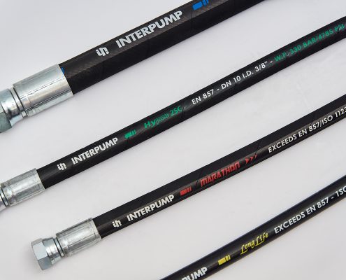 Interpump Fluid Solutions’ high performance hydraulic hoses range is a wide collection of hoses that exceed international standards. In our product development, many of the hoses have been designed around specific customer requirements. This ensures they have additional features such as being able to perform at higher pressure, containing additional abrasion resistance and benefitting from specially certified covers. Our high performance range is the product of choice for customers who require a certified hose that exceeds international standards for their chosen applications.